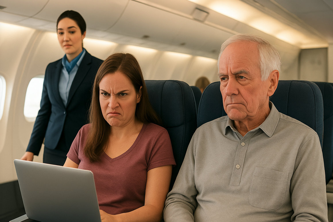 jewellya78645 said she was in the middle seat, next to a passenger who was an older (mid-late 60s) male. Said guy had been continuously flirting with the flight attendant during takeoff in Tucson. He then brought it up a notch and said something so skanky it made the FA’s eyes roll.
