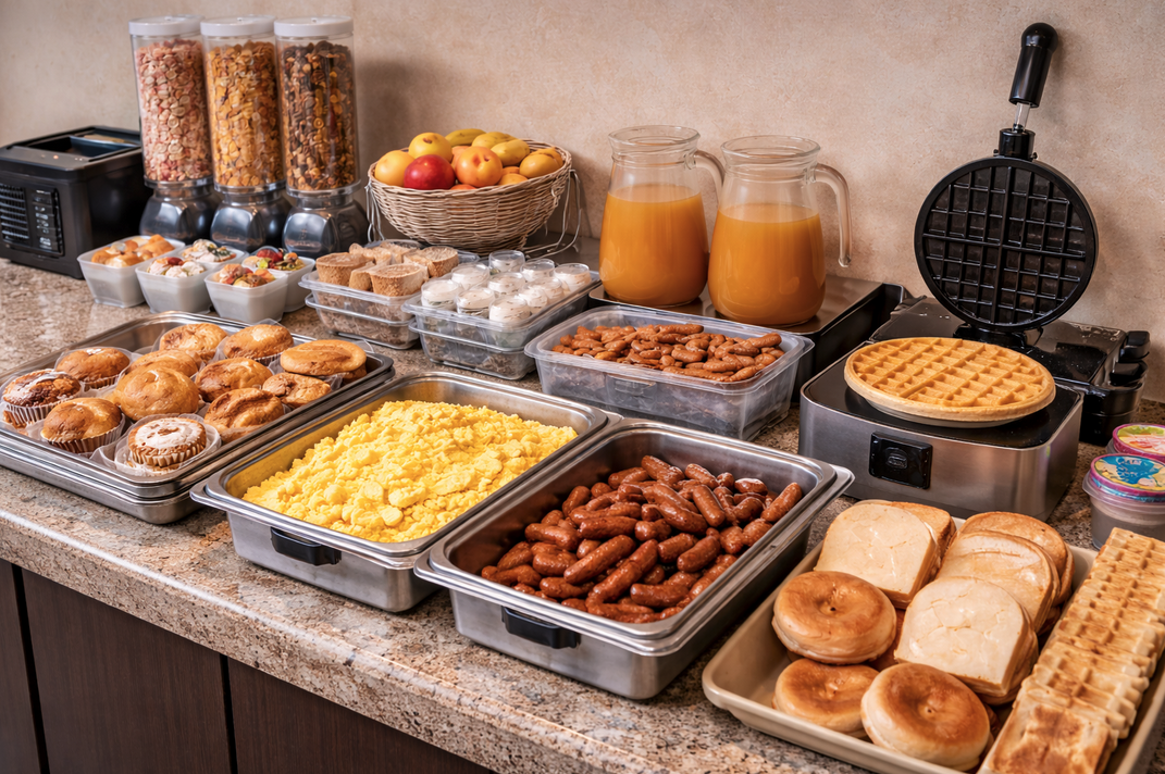 For people traveling with families, the decision of “which hotel” may boil down to free breakfast. I mean, people gotta eat. And feeding a family of 4, 5, 6 or even more winds up becoming an expensive proposition, even if it’s just the local IHOP or Waffle House – especially if the kids in tow are teenagers. So, being able to give them an entire meal for free can save a family a whole lot of money.