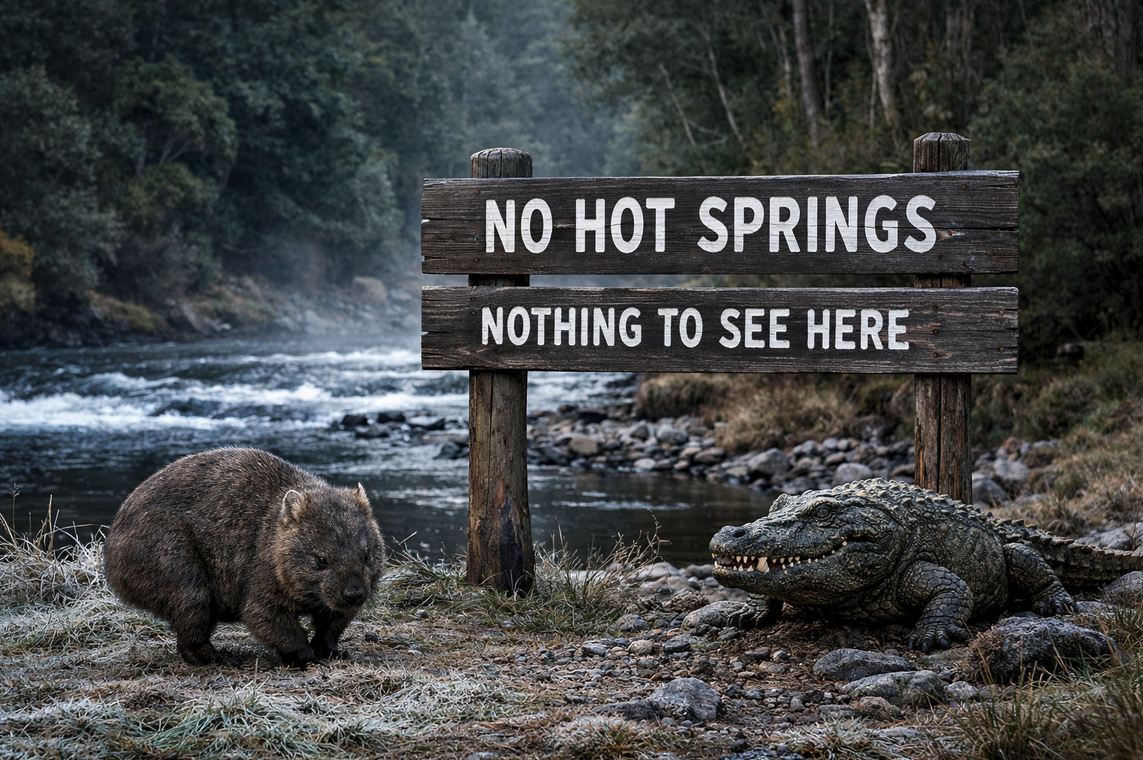 “Its reputation as a tranquil haven has made it a favourite among local hiking groups, wellness retreat organizers and anyone wanting to experience one of the more untouched hot springs Tasmania has to offer,” the post claimed, according to the Australian Broadcasting Corporation (ABC). All of which was news to the people who actually live there.