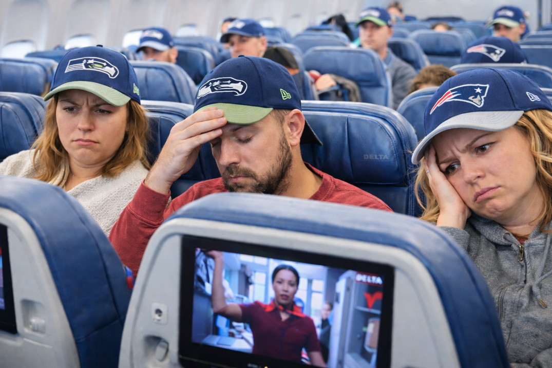 A delayed Delta flight out of Orlando sparked audible frustration when the FAA-required safety briefing cut into Bad Bunny’s Super Bowl halftime performance.