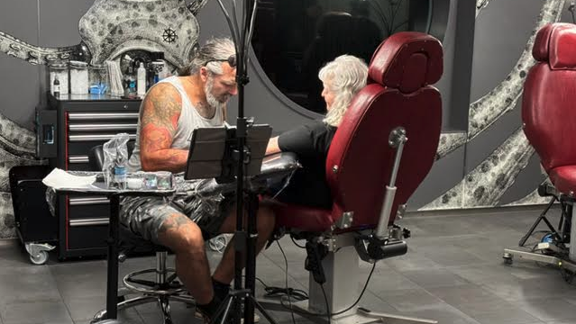 According to Piero, normal ship movement isn’t an issue. When the ship rocks, everyone on board is moving at the same rate, so it doesn’t affect the tattooing process. Only in cases of very rough seas — when it’s difficult to sit or stand steadily — would appointments be delayed or rescheduled.