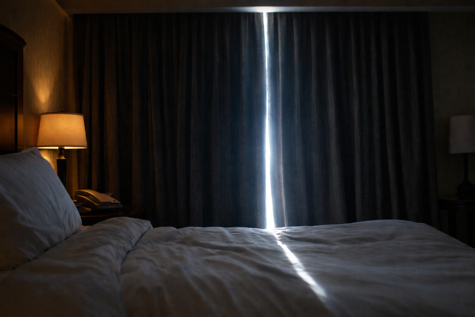 Some hotels install blackout curtains that don’t reach the edge of the window. Others leave gaps that let in a laser beam of parking-lot lighting directly into your face at 2:00 AM. And then there are the ones where the curtains technically close, but they’re so thin they might as well be decorative.