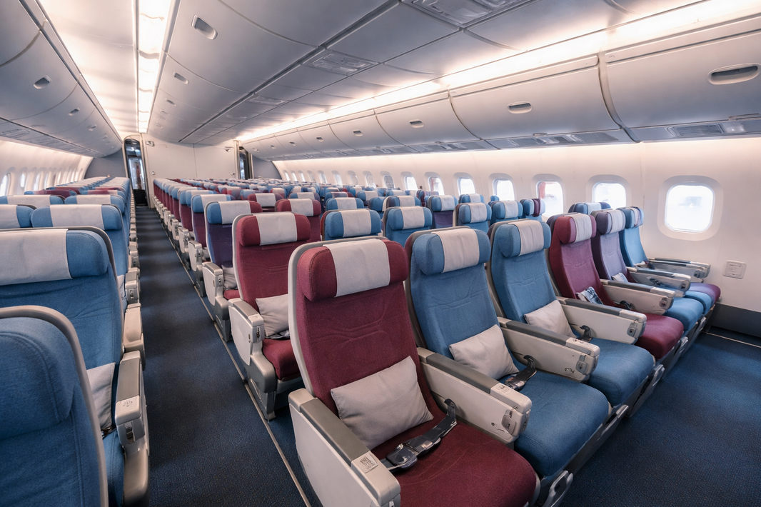 (B) the aircraft were reconfigured to be able to hold more people. In the process, the old upper-deck economy layout that allowed the quiet-zone concept no longer existed.