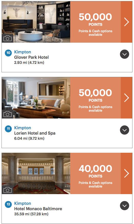 Given, I’ve only searched for three hotels on a specific set of dates, but it appears that IHG has set the point values of the Kimpton hotels at the upper range of their redemption values. As with any hotel, it may be possible to find an amazing redemption with points for a specific stay but you really need to be aware and compare the cash rate with the points needed. They may eventually bring these point values more in line with the rest of the IHG hotels but for now, they seem to have a premium price point.