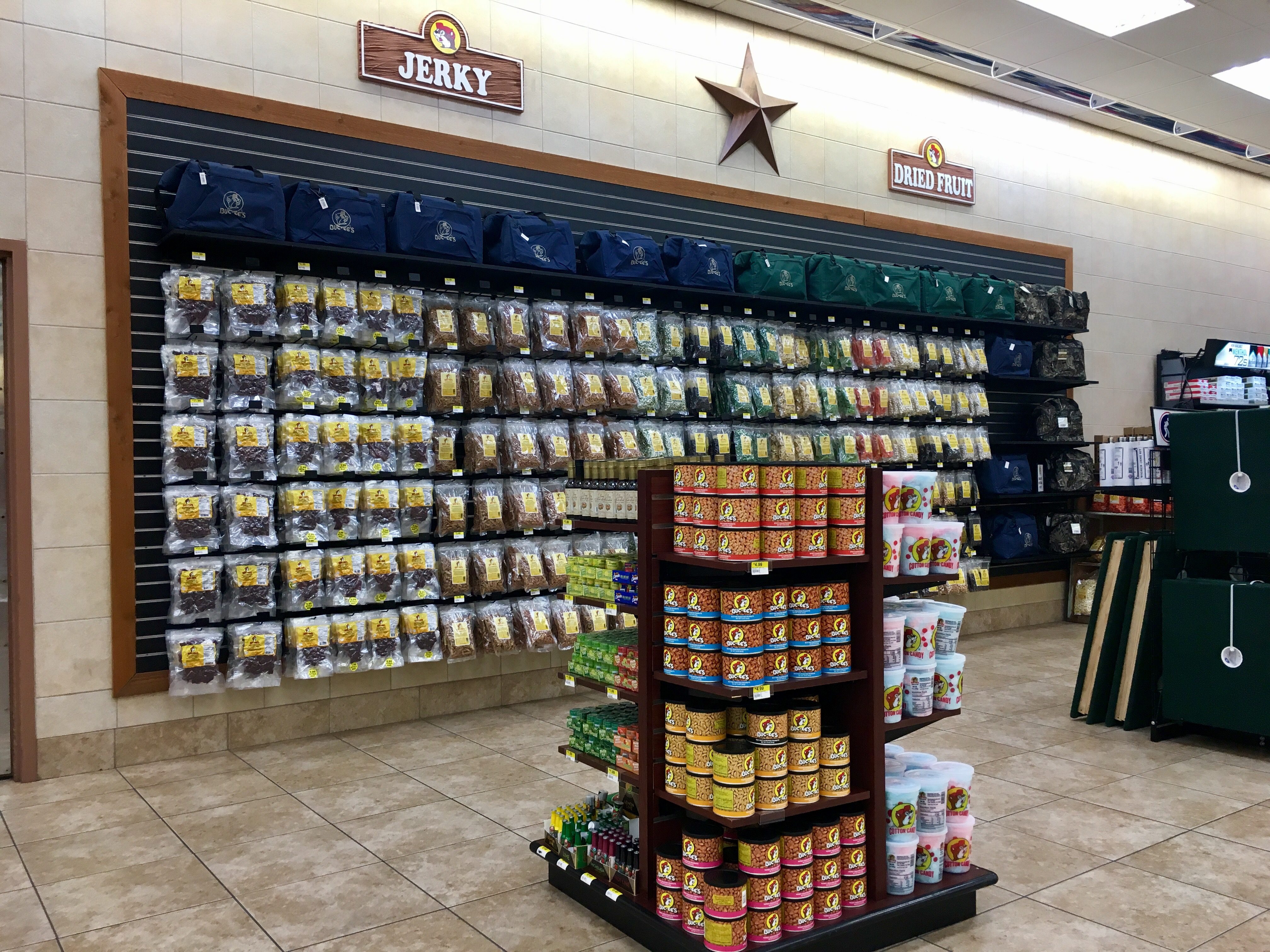 Dozens of different kinds of jerky, both fresh and pre-packed! And they do free samples of the fresh stuff!