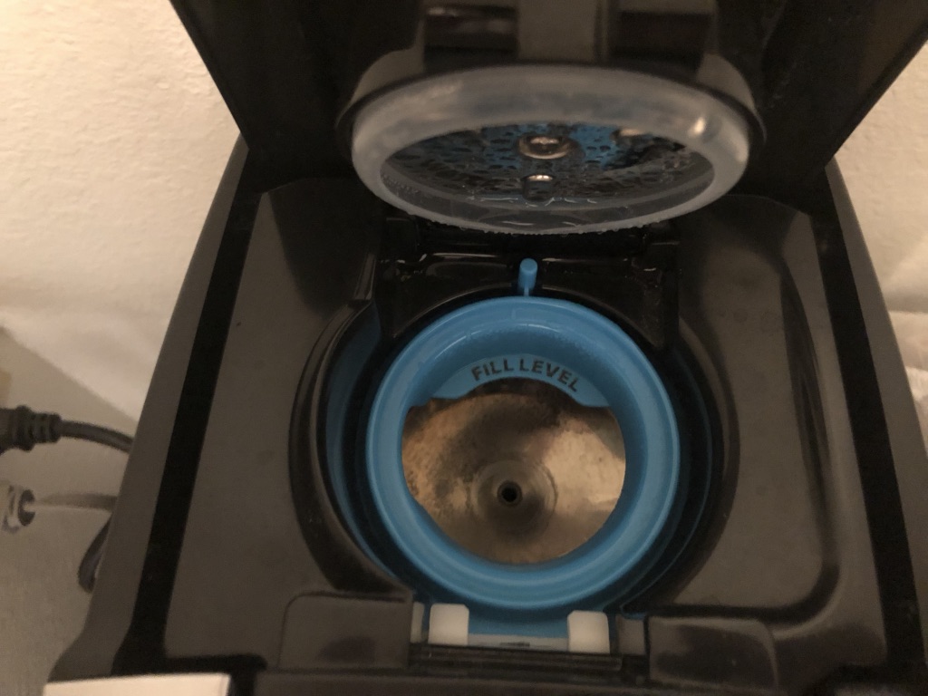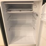 The room also has a fridge and a Keurig coffee maker that looked clean