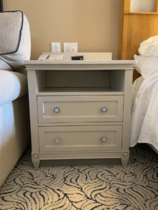 The chest of drawers under the (teeny tiny, itsy bitsy) TV wouldn’t hold anything significant, since they were literally less than 6 inches wide (again, I measured). That left the 2 drawers on the nightstand. All for a room that potentially holds up to 4 people.