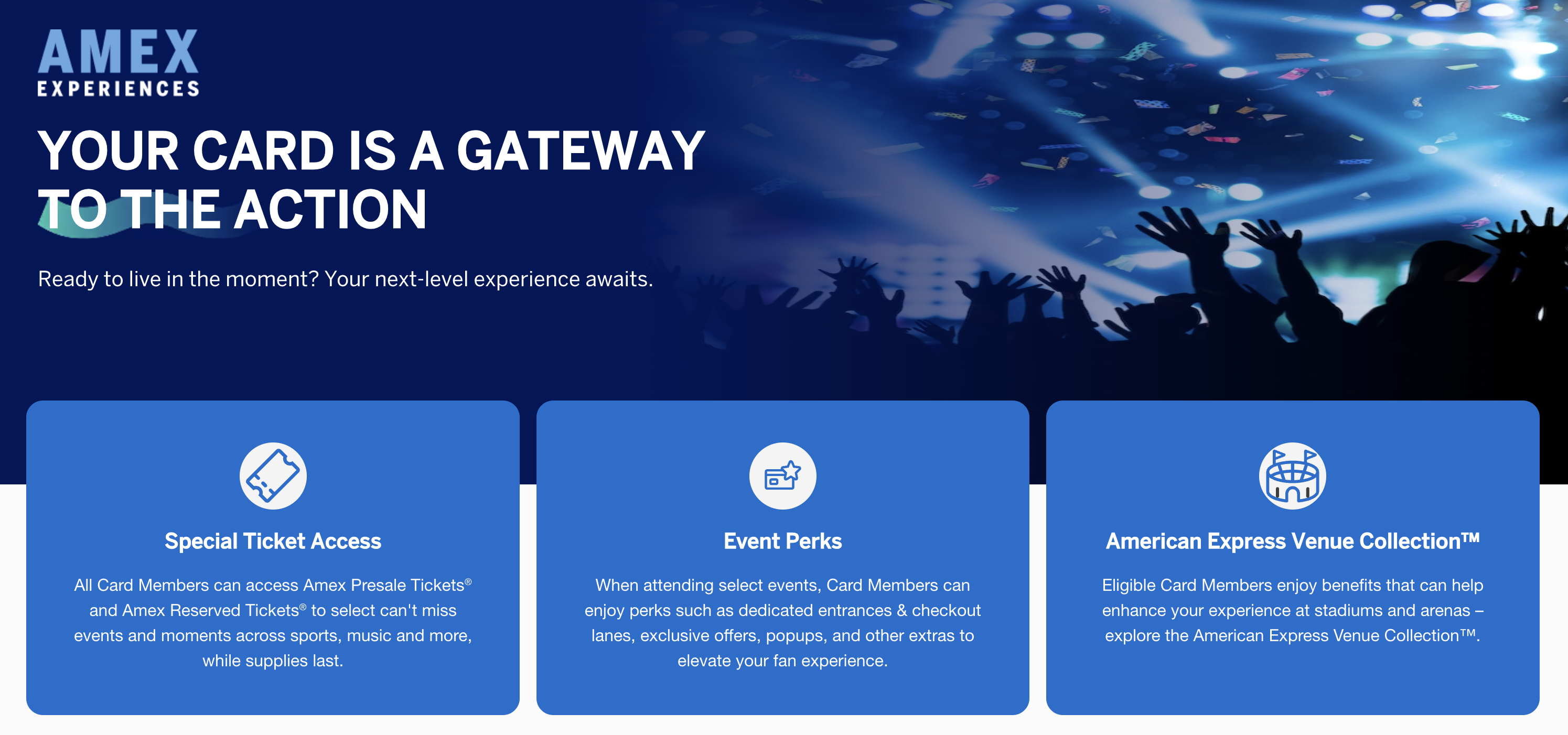 If you’ve ever used your Amex card to get access to a presale, score reserved tickets, or take advantage of some sort of event-related offer, those types of benefits still appear to be part of the broader Amex Experiences. What seems to be going away is the older umbrella name that grouped them together.