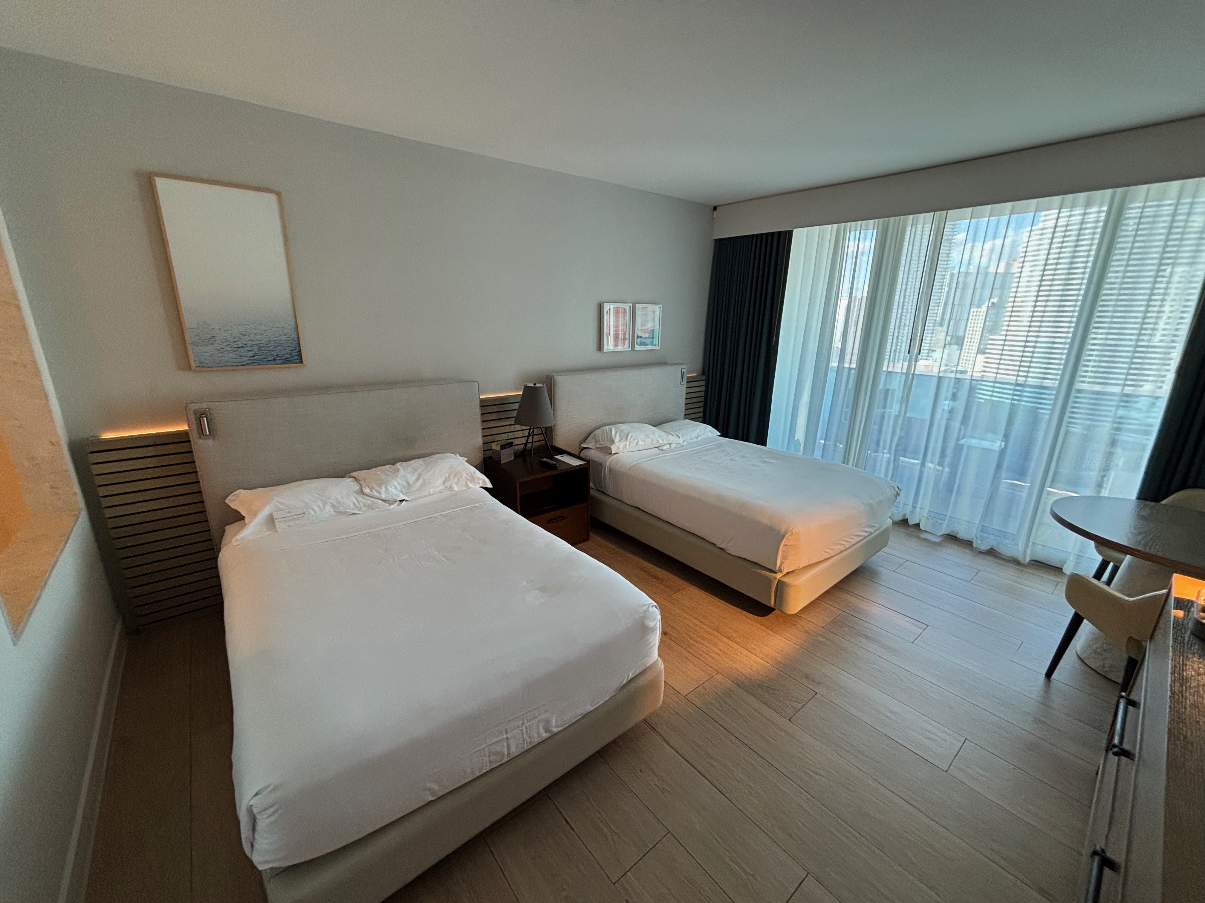 We booked a room with two beds and a city view, and overall, it was a very solid room for a pre-cruise stay. The design was clean and modern, with tile floors, simple furniture and enough space that the room didn’t feel cramped, even with two beds.