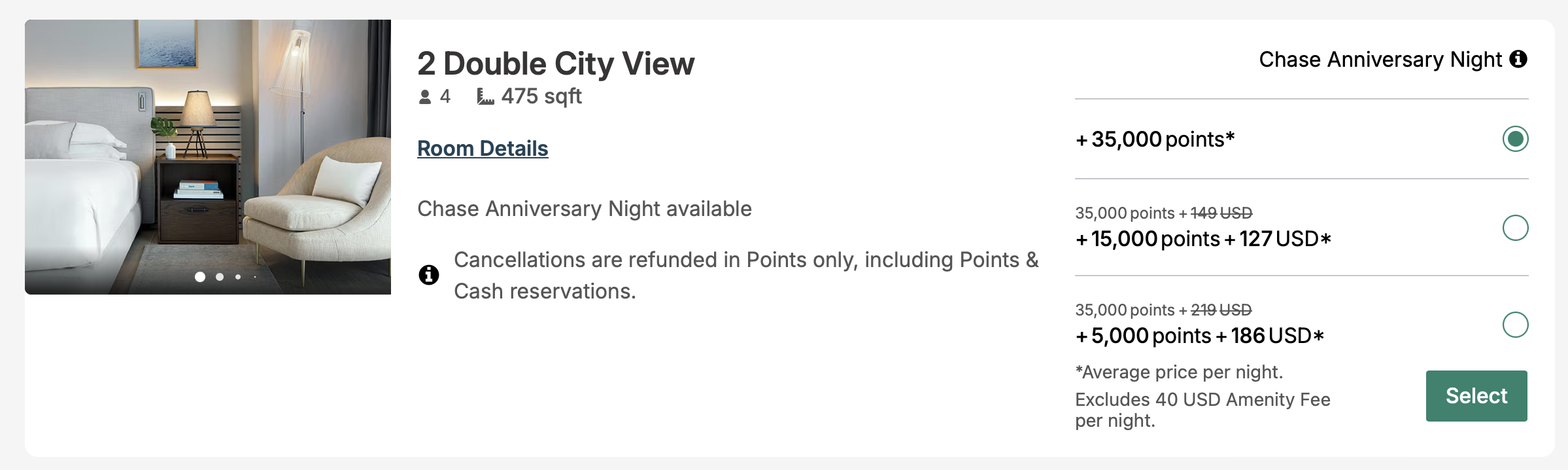 Our room was pricing at 75,000 points for the night, so I used the anniversary certificate plus 35,000 points.